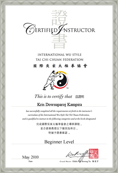 Once upon a time, a cute little Thai girl was crazy about Kung Fu movies and secretly wanted to be a Kung Fu Master. However China was very far away and her parents wouldn’t let her go to carry water or climb the mountain. There was nothing else the cute little girl could do but keep the secret in her heart. Time passed by. The cute little girl became an ugly old lady but the dream never died. Finally she found the love of her life in Little Red Dot Land. She knew this love would never let her down. After one and a half years, she decided to get married. Her adventure in Tai Chi’s world has just begun…. Based on true story of myself. Tai Chi is my endless love. I find myself falling in love with it deeper and deeper every day. Thanks to my Sifu Eddie, his decision to open Wu style Tai Chi Chuan to the public gave an opportunity to outsiders like me to have a taste of cherry. The passion for Tai Chi of my Si Gu Jie Ms Saw and Si Suk Mr Goon is an eye opener. They have shown me how beautiful & wonderful Tai Chi is. On top of that they are the learning shortcut. With the company of my fellow disciples and all the Si Gu and Si Suk at school, it makes my learning enjoyable and fun. Others martial art experiences: Thai boxing and Kaewando (beginner) |