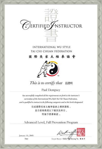 Senior Instructor at the Wu's Tai Chi Chuan Academy, Toronto, Ontario, Canada Paul Dempsey was elected club Vice-President at the Toronto Club Annual General Meeting of December 19th 2003. Paul Dempsey joined the academy in 1995 and has been the Beginners Class chief instructor since 1997. He became a disciple of Sifu Eddie Wu in 2002 Paul is both a martial artist and an artist of many disciplines. At present, he is an Associate Professor at the Ontario College of Art and Design and is also a Hand Gun Safety Instructor at the Toronto Revolver Club. |