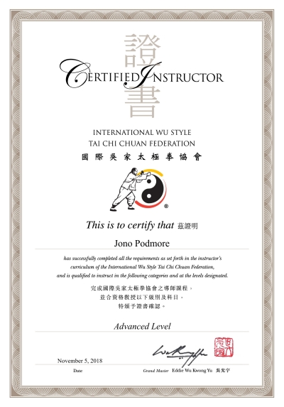 Born in Liverpool, Jono began studying Karate when he moved to London to study in 1983. After achieving 2nd dan black belt, teaching regularly and international competition he recognised that the next step was in Tai Chi. He began training at Sifu Gary Wragg’s Academy in 1997 but in 1999 left London to live and work in Germany and France and start a family. On his return to London in 2009 he continued his training at Wu’s Academy Bethnal Green where he is now a regular presence in the advanced class, teaching the Sunday morning family beginners class and taking part in competitions and demonstrations worldwide. In 2016 he began his own club in Forest Hill, London, which is now well established. He was made a Closed Door student of Sifu Gary Wragg in November 2017. In 2005 Jono was appointed Professor of the Practice of Popular Music at the University of Music in Cologne, Germany. He lives in London, continuing with his own practice as composer, producer and performer. |
