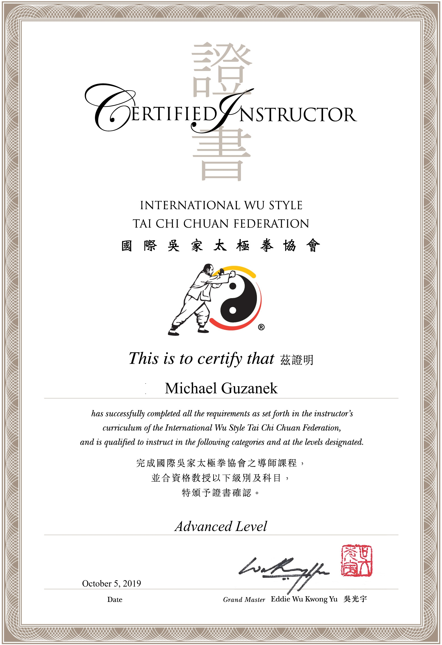 Disciple Status: Disciple of Grand Master Eddie Wu Kwong Yu