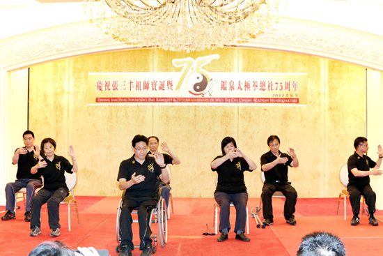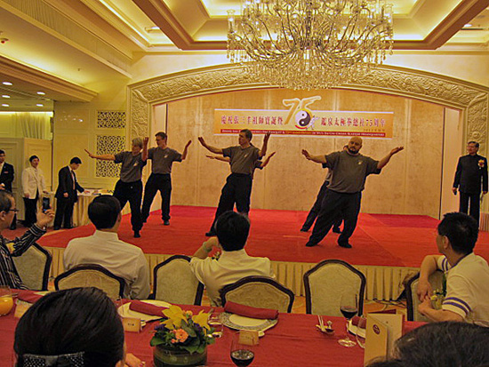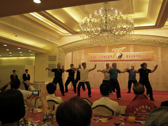 On May 20th, a gala dinner was held to celebrate the event presided over by Grandmaster Eddie Wu, 5th Generation of the Wu Family and Gatekeeper of the Wu StyleTai Chi Chuan. During the evening several demonstrations were given by members of Academies around the world: Group forms, Saber, Sword, Speer, Push Hands, Martial techniques, and a sitting form.